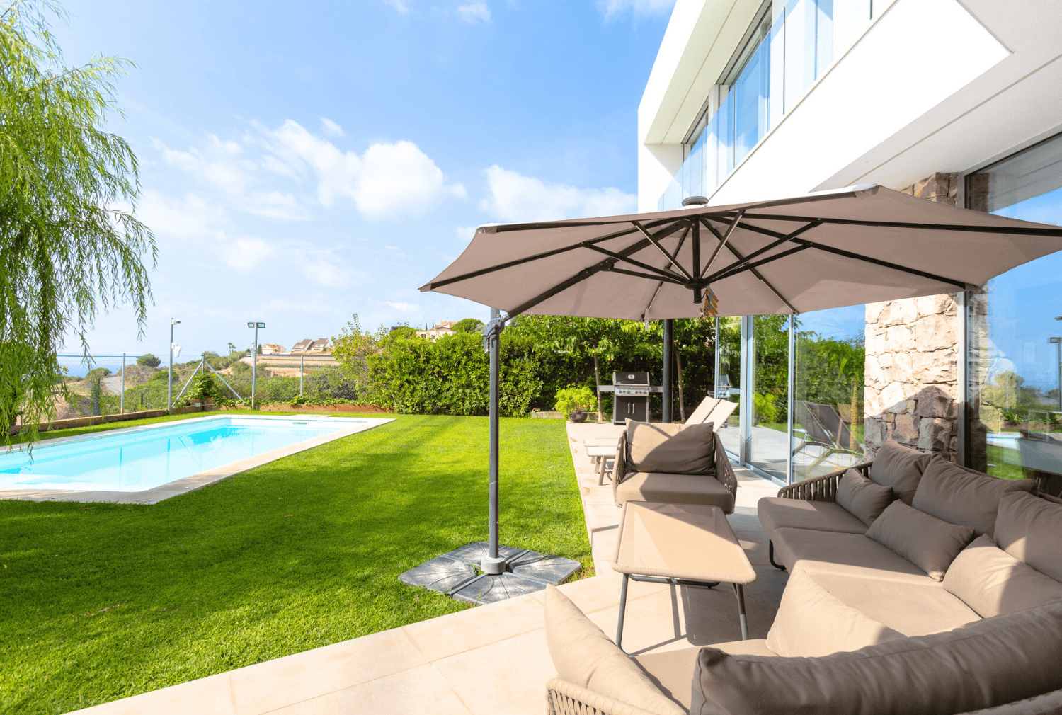 Arquitectura elevada con vistas abiertas al Mediterráneo.